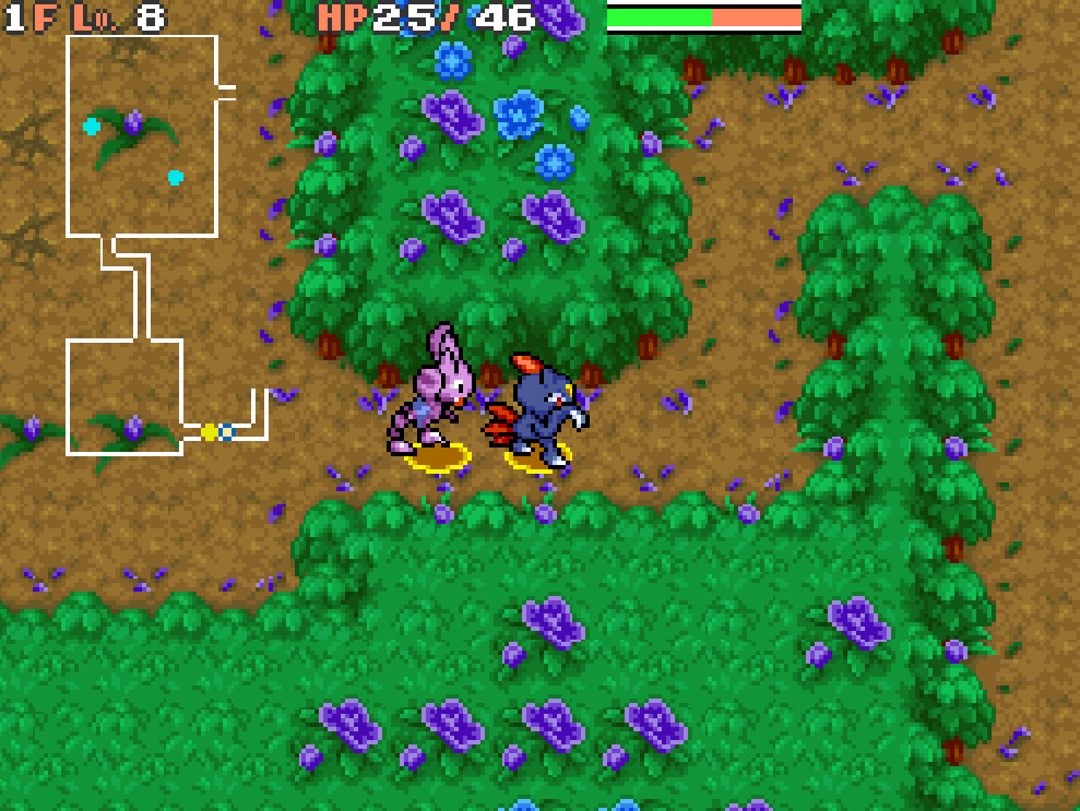 An updated vanilla-ish take on Explorers of Sky! Every dungeon has been revamped, with some contain special gimmicks (EX: Drenched Bluff has a dangerous 6th floor, Waterfall Cave is always rainy and max darkness, there's no food in the Northern Desert, etc.) The game is intended to have a higher difficulty curve, however it isn't unfair/kaizo-level hard.